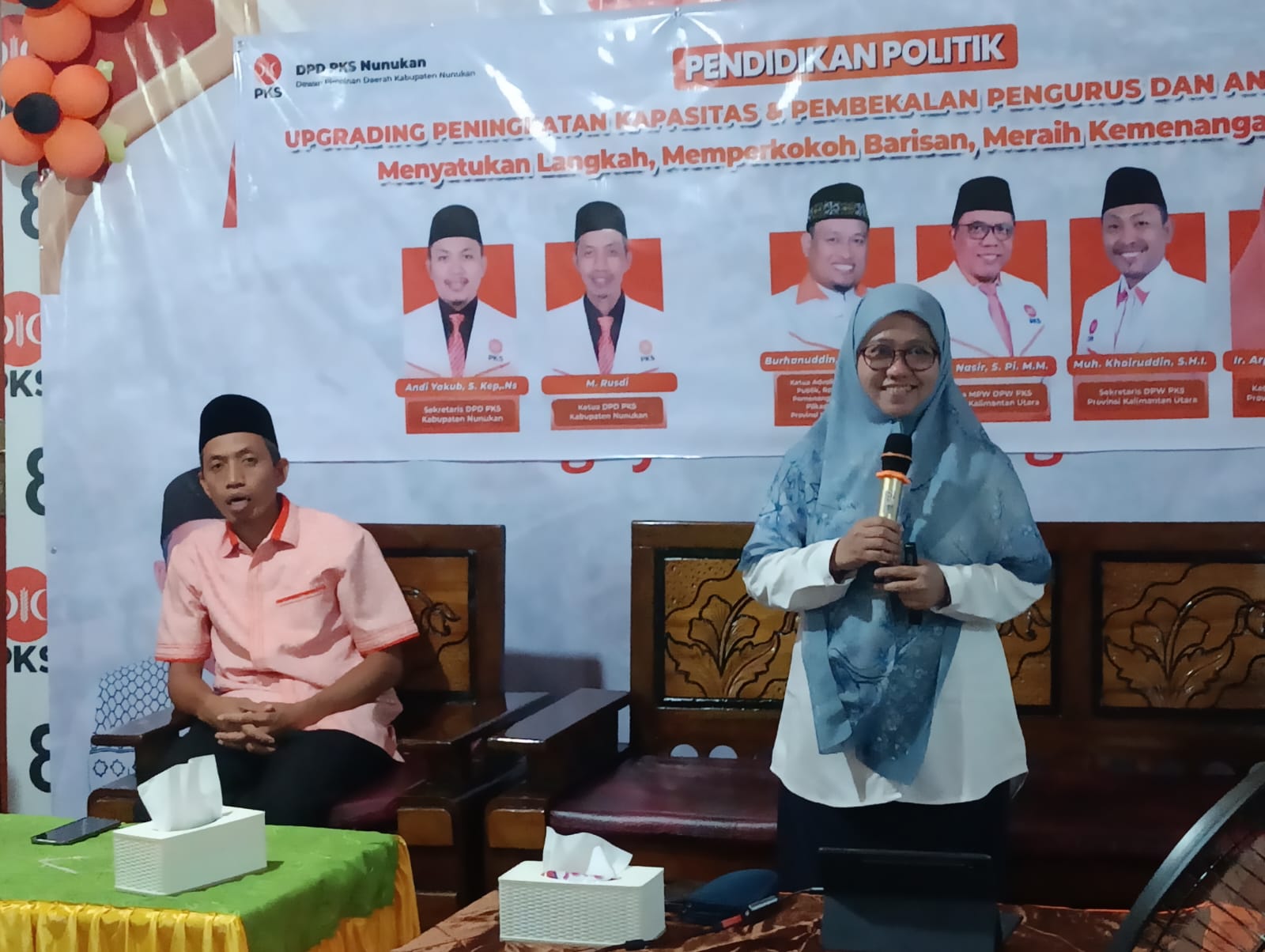 Kegiatan tersebut, menghadirkan sebanyak empat pemateri yakni, Ketua Advokasi Kebijakan Politik, Relawan, saksi, pemenangan pemilu dan pilkada DPW PKS Provinsi Kaltara, Burhanuddin, S.H.I, M.M., Ketua MPW DPW PKS Kaltara, Muhammad Nasir, S.Pi, M.M., dan Sekretaris DPW PKS Provinsi Kaltara, Muh. Khoiruddin, S.H.I., serta Ketua Bipeka DPW PKS Kaltara, Ir. Arpiah, S.T., M.I.Kom.