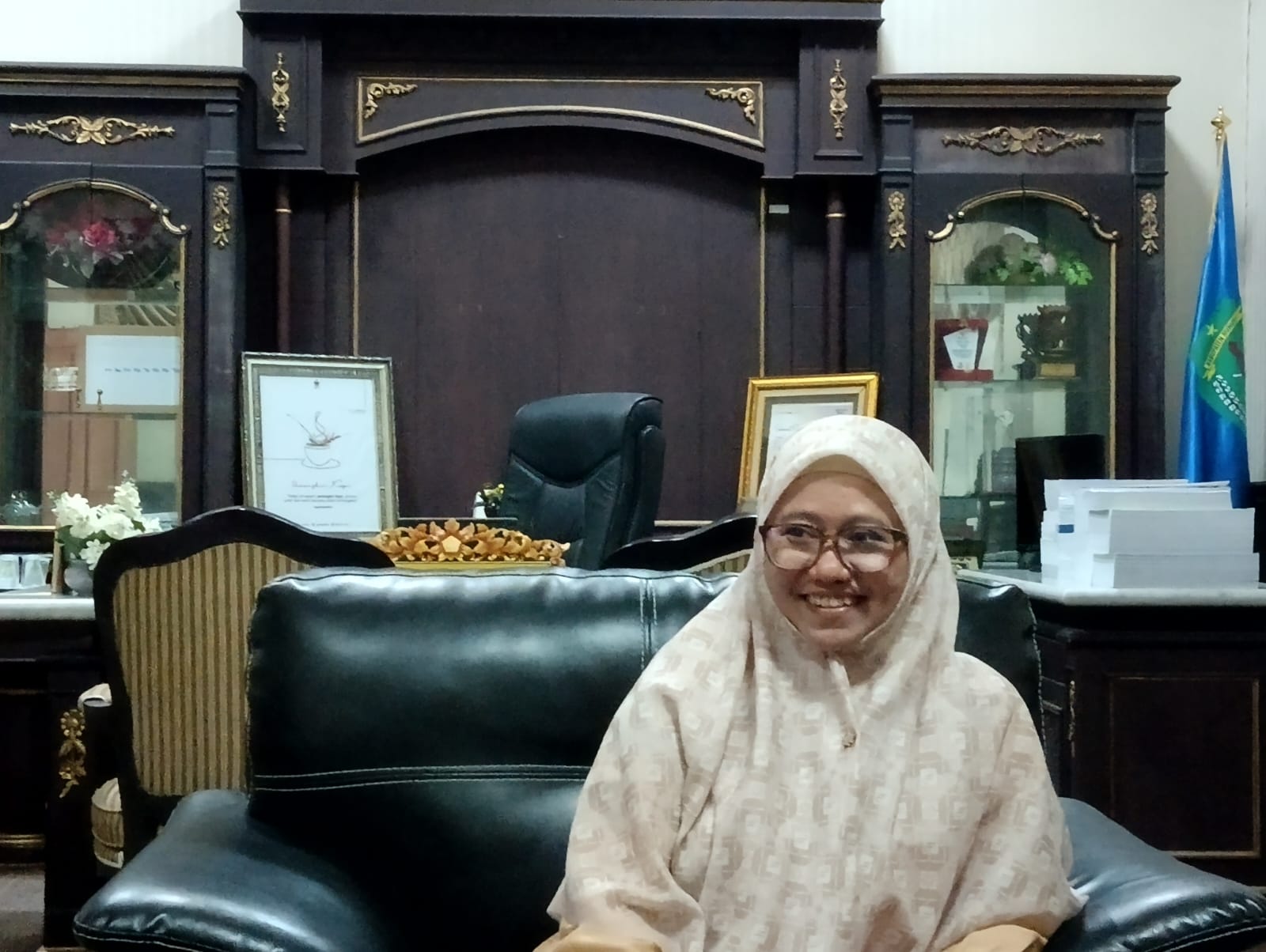 Wakil Ketua DPRD Nunukan, Arpiah, berbincang bersama sejumlah wartawan di ruang kerjanya.