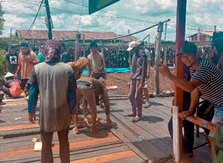 Dalam kegiatan tersebut, Arming turut memberikan dukungan berupa bantuan material seperti kayu ulin dan perlengkapan yang dibutuhkan untuk perbaikan. Sementara proses pengerjaan dilakukan secara swadaya oleh masyarakat dengan semangat kebersamaan.