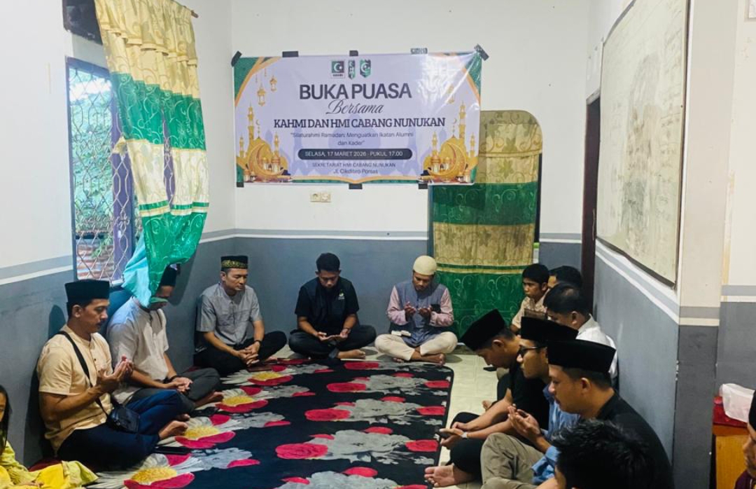 NARASI POSITIF.com, NUNUKAN – Koordinator Presidium Korps Alumni Himpunan Mahasiswa Islam (KAHMI) Kabupaten Nunukan, Arief Budiman, mengatakan pihaknya bersama kader Himpunan Mahasiswa Islam (HMI) menggelar kegiatan buka puasa bersama yang dirangkaikan dengan pembagian takjil serta doa bersama untuk almarhum Jumadi Arizal, salah satu alumni HMI Nunukan. Kegiatan tersebut dilaksanakan di Sekretariat HMI Cabang Nunukan pada Selasa (17/3/2026).