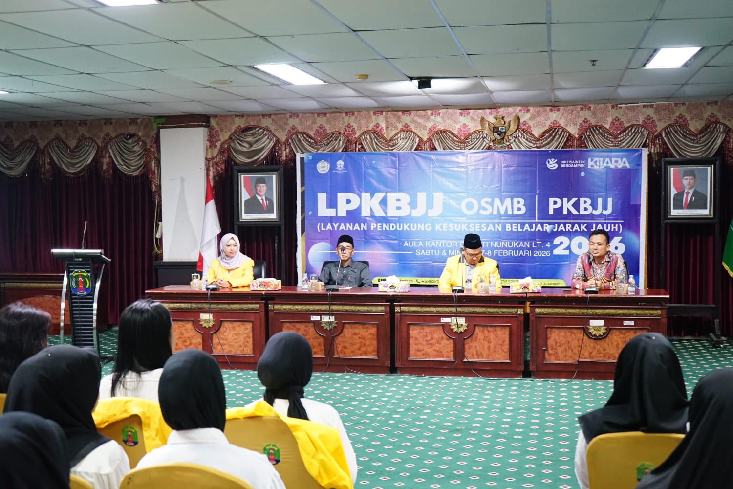 Dalam sambutannya, Alimuddin menyampaikan bahwa kegiatan OSMB dan PKBJJ menjadi langkah awal yang penting bagi mahasiswa baru untuk memahami sistem pembelajaran di Universitas Terbuka serta membekali diri dengan keterampilan belajar yang efektif.